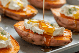 Roasted sweet potatoes with goat cheese and honey: a sweet and savory match that rocks