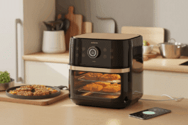- Explore a conectividade : sincronize seu Airfryer com seu smartphone ou assistentes de voz para automatizar a cozinha, mantendo o controle sobre as configurações.