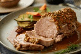 Ah, o filé mignon de porco assado com mostarda à antiga… um clássico, sim, mas quando é bem feito, é uma verdadeira delícia. Confesso que não uso azeite, prefiro esse lado mais bruto, a mostarda fala por si.