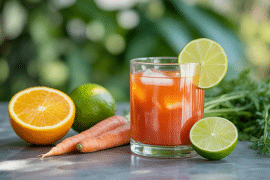 Ce que j’adore, c’est ce doux équilibre entre le sucré naturel de l’orange, la légère acidité du citron vert, et la douceur un peu terreuse de la carotte. Cela fait un jus très vitaminé, vous savez en 2025 on cherche encore plus des recettes simples, saines, avec zéro prise de tête, et celle-ci est pile ce qu’il faut.